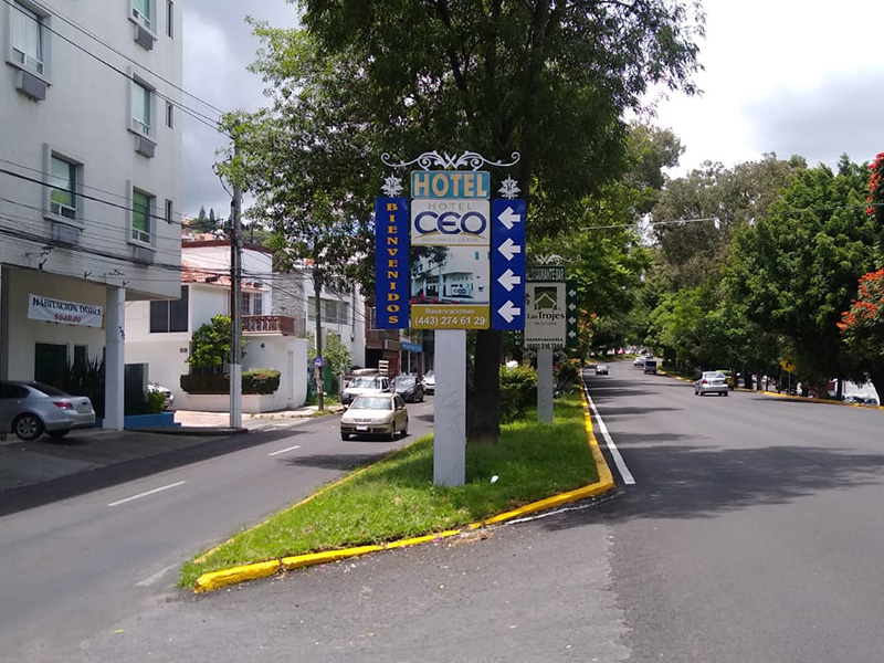 En Morelia contamos con la renta de carteleras urbanas de señalización para Hoteles y Restaurantes, con una alta visibilidad al tráfico vehicular y peatonal, rotuladas en vinil reflejante.